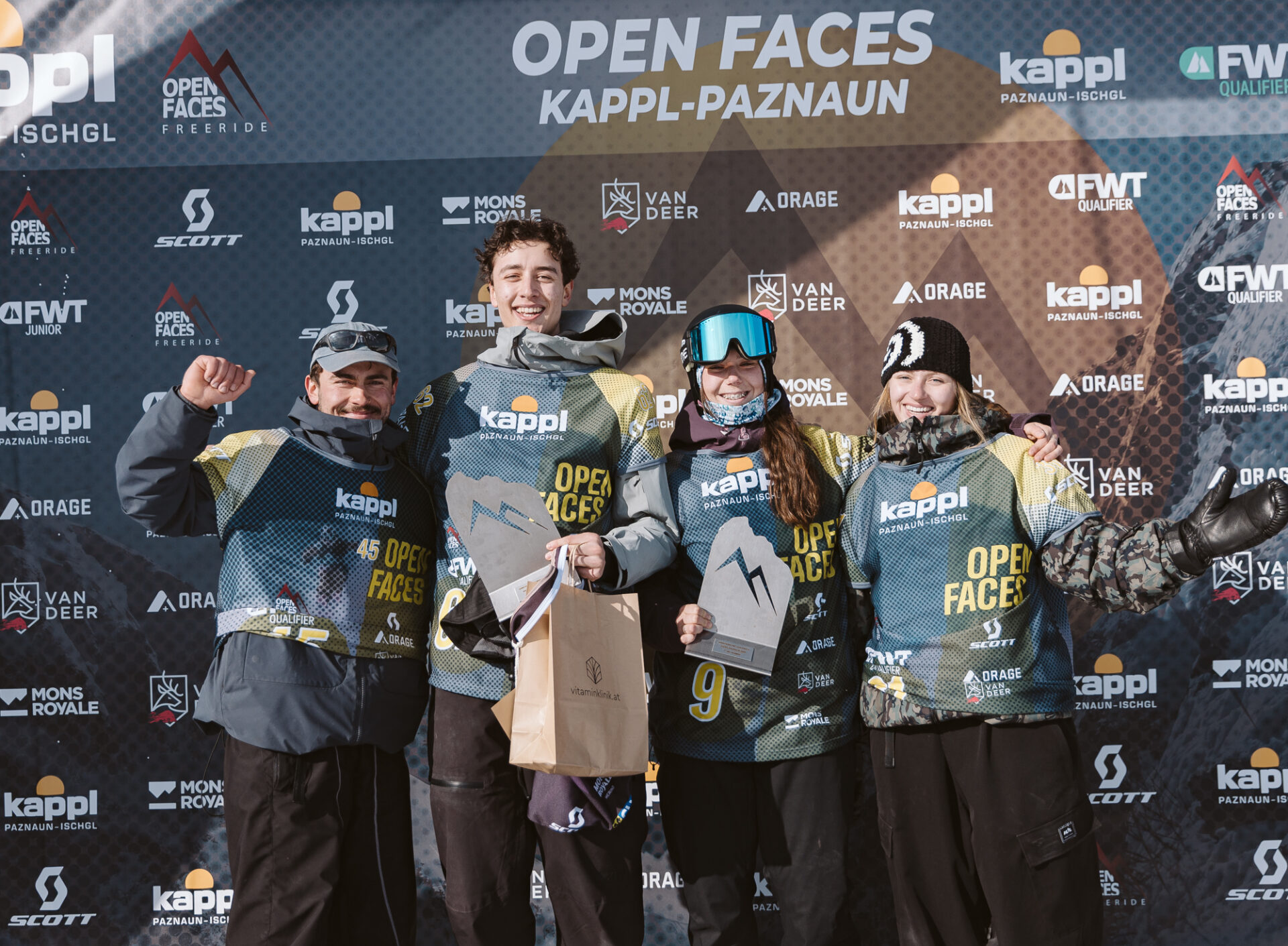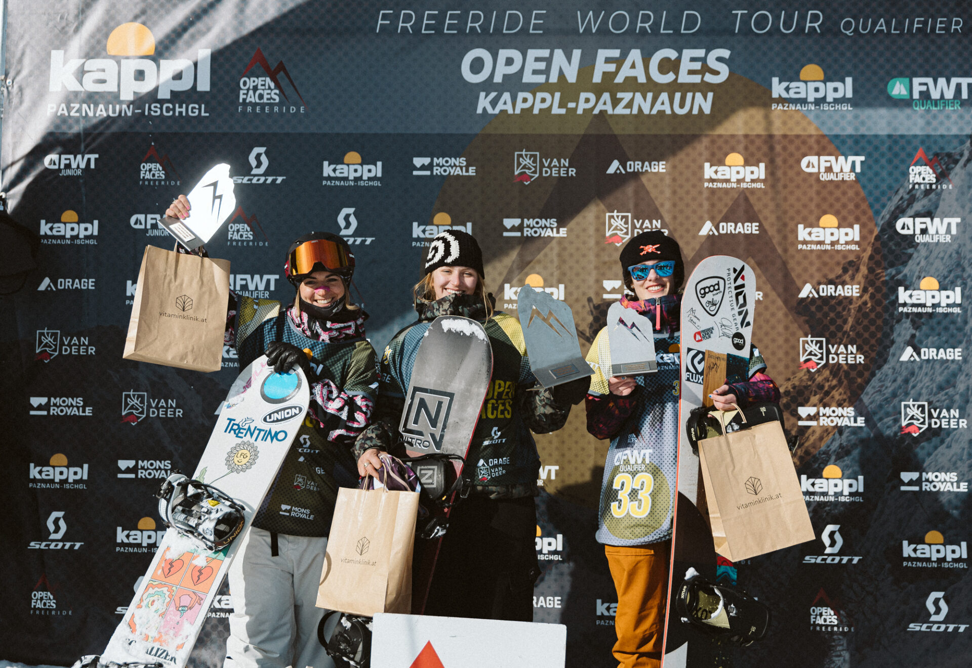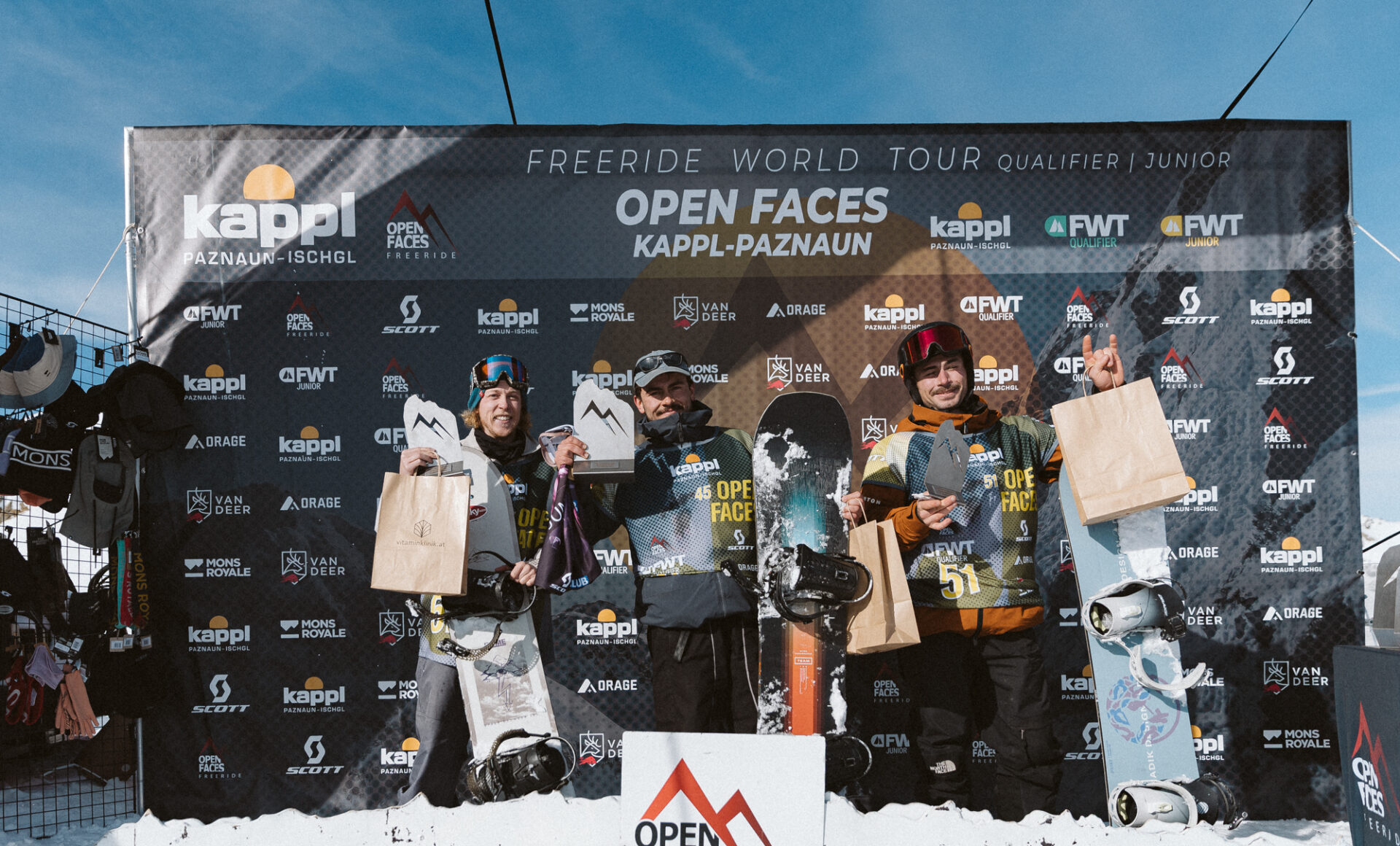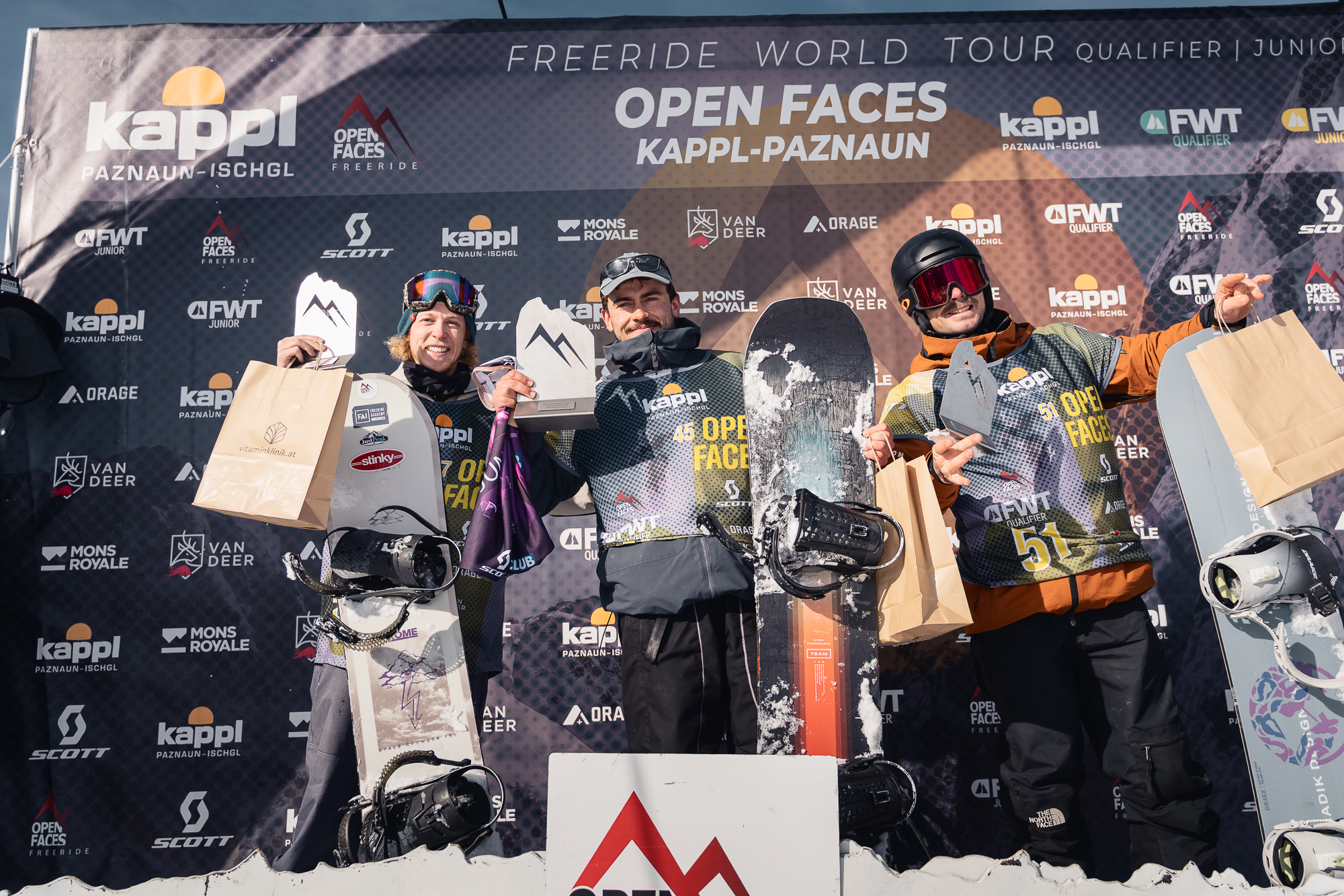 Der 3* Open Faces Freeride Contest in Kappl fand bei perfekten Bedingungen statt. Strahlender Sonnenschein und Powder sorgten für einen fairen und hochklassigen Wettkampf am Ablittkopf. Das bereits von der Junioren-WM bekannte Face überzeugte mit abwechslungsreichem, verspieltem Gelände, natürlichen Features, Windlips für Tricks sowie mehreren anspruchsvollen Cliffs. Das sportliche Niveau war außergewöhnlich hoch. Besonders in der Kategorie Ski Men wurde ein neuer Punkterekord aufgestellt: Der erst 19-jährige Tiroler Simon Zwischenbrugger gewann mit seinem spektakulären Lauf und erreichte unglaubliche 98 von 100 Punkten. Dahinter belegten Federico De Michiel (ITA) und Jonathan Hauss (AUT) die weiteren Podestplätze. Bei den Ski Women setzte sich Lucinda Laird (AUS) mit einem kontrollierten und stylischen Run durch. Die Tschechinnen Wanda Svancer und Monika Novakova komplettierten das Podium. Auch hier war das Niveau hoch, die Siegerin erzielte 85 Punkte. In den Snowboard-Kategorien siegten Mia Grempel (GER) bei den Frauen und Daniel Nufer (SUI) bei den Männern. Insgesamt bestätigte Kappl einmal mehr seinen Ruf als internationaler Top-Spot für Freeride-Wettbewerbe.